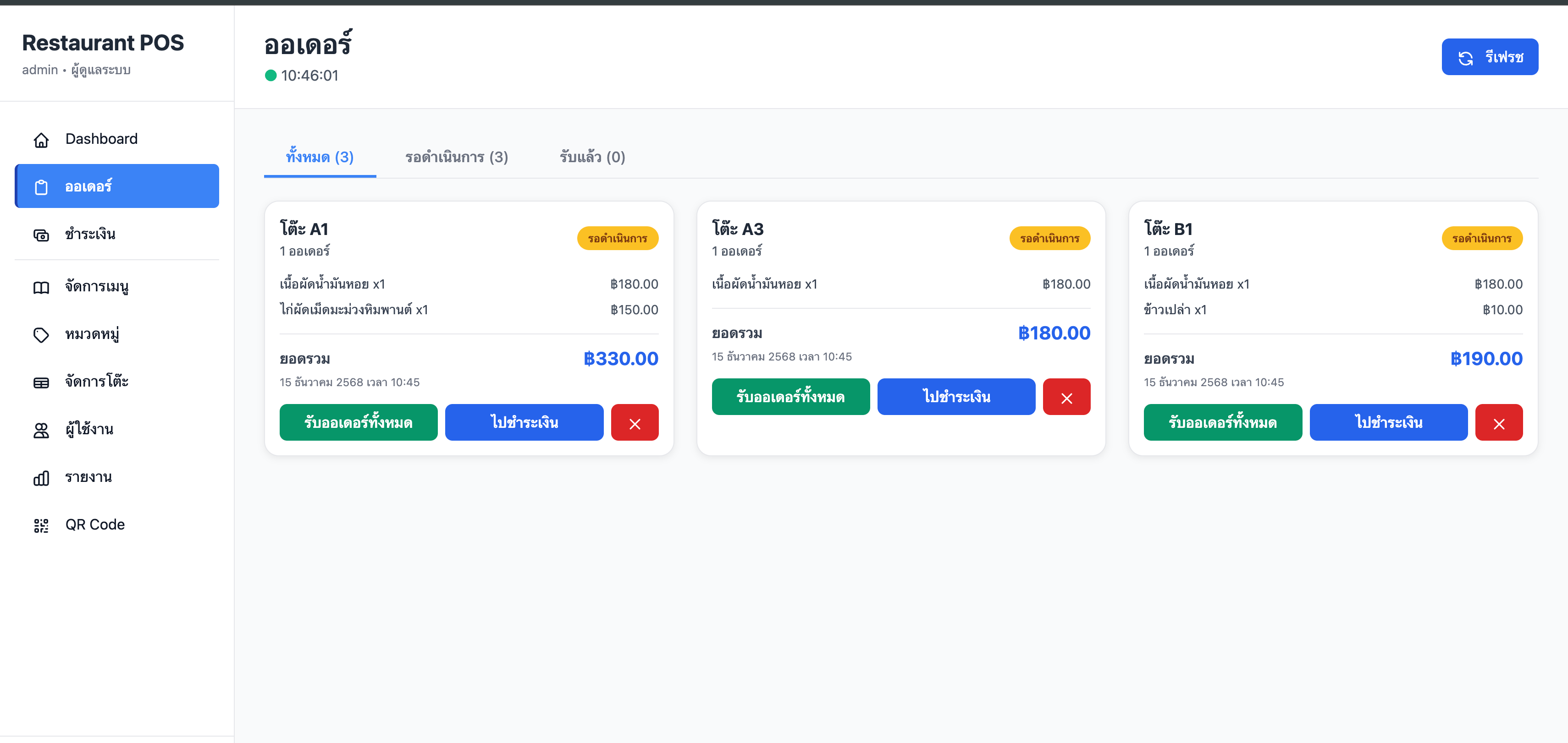 ระบบรับออเดอร์ร้านอาหารแบบครบวงจร พร้อม QR Code สำหรับลูกค้า และระบบจัดการหลังบ้านสำหรับ Admin/Cashier