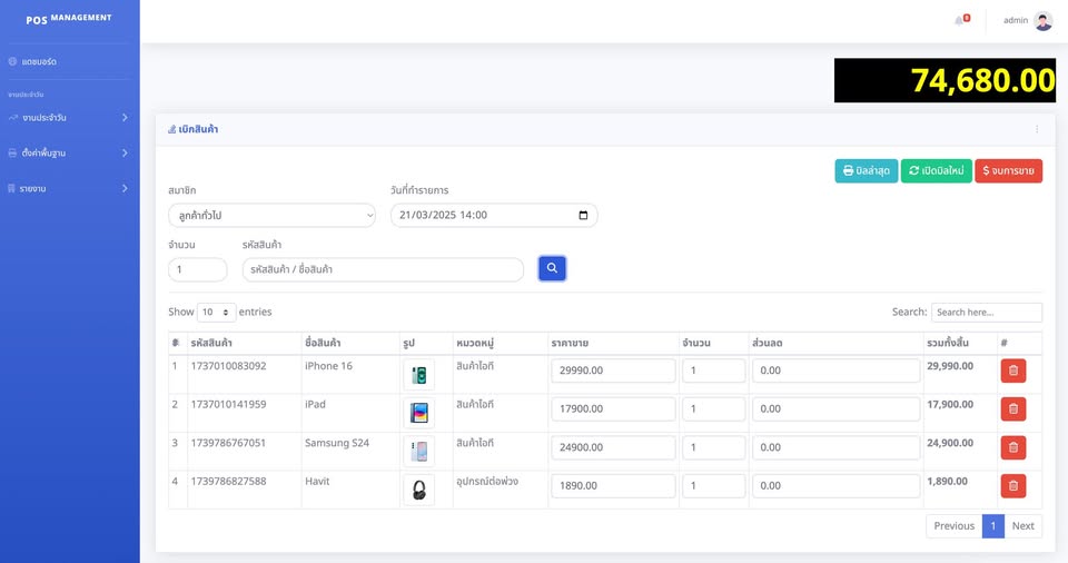 ระบบรับออเดอร์ร้านอาหารแบบครบวงจร พร้อม QR Code สำหรับลูกค้า และระบบจัดการหลังบ้านสำหรับ Admin/Cashier